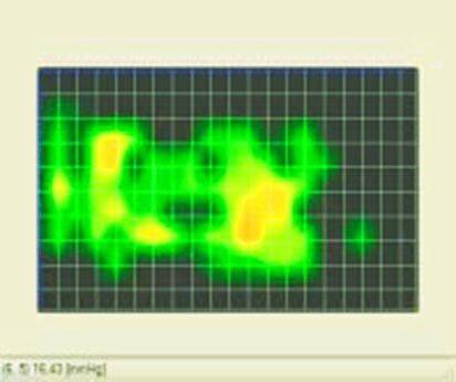 Bei Auswahl dieser Option werden die Daten in Form einer Landkarte der ausgeübten Drücke angezeigt. Die Sensoren werden mit Farben dargestellt, die vom Wert des ausgeübten Drucks abhängen: