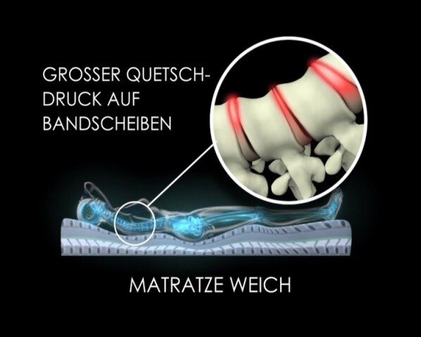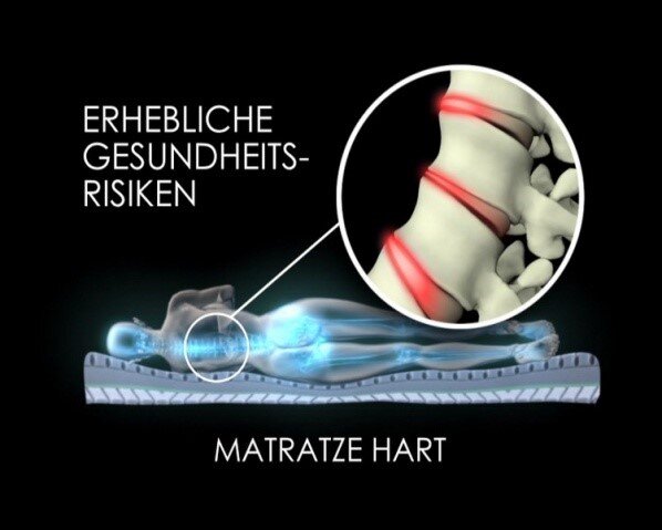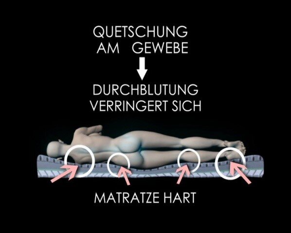 Unnatürlicher Druck führt zu Veränderungen im Lymph- und Blutkreislauf und zu Irritationen der Nervenenden, was in Verbindung mit unnatürlichen Stellungen der Wirbelsäule, wie dies bei konventionellen Bettsystemen der Fall ist, einen Zwang zu häufiger Veränderung der Liegeposition sowohl bei Tag als auch besonders bei Nacht hervorruft, was im letzteren Fall zu einer Beeinträchtigung der Schlafphasen führt.